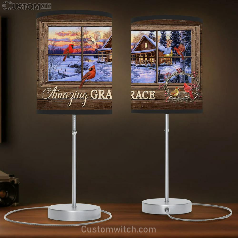 Amazing Grace Table Lamp Gift - Cardinal Birds - Christian Christmas Wall Decor - Christian Bedroom Decor