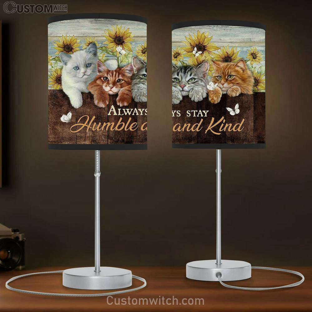 Always Stay Humble And Kind Cat Sunflower White Butterfly Table Lamp Painting - Christian Lamp Gift - Gifts For Cat Lovers