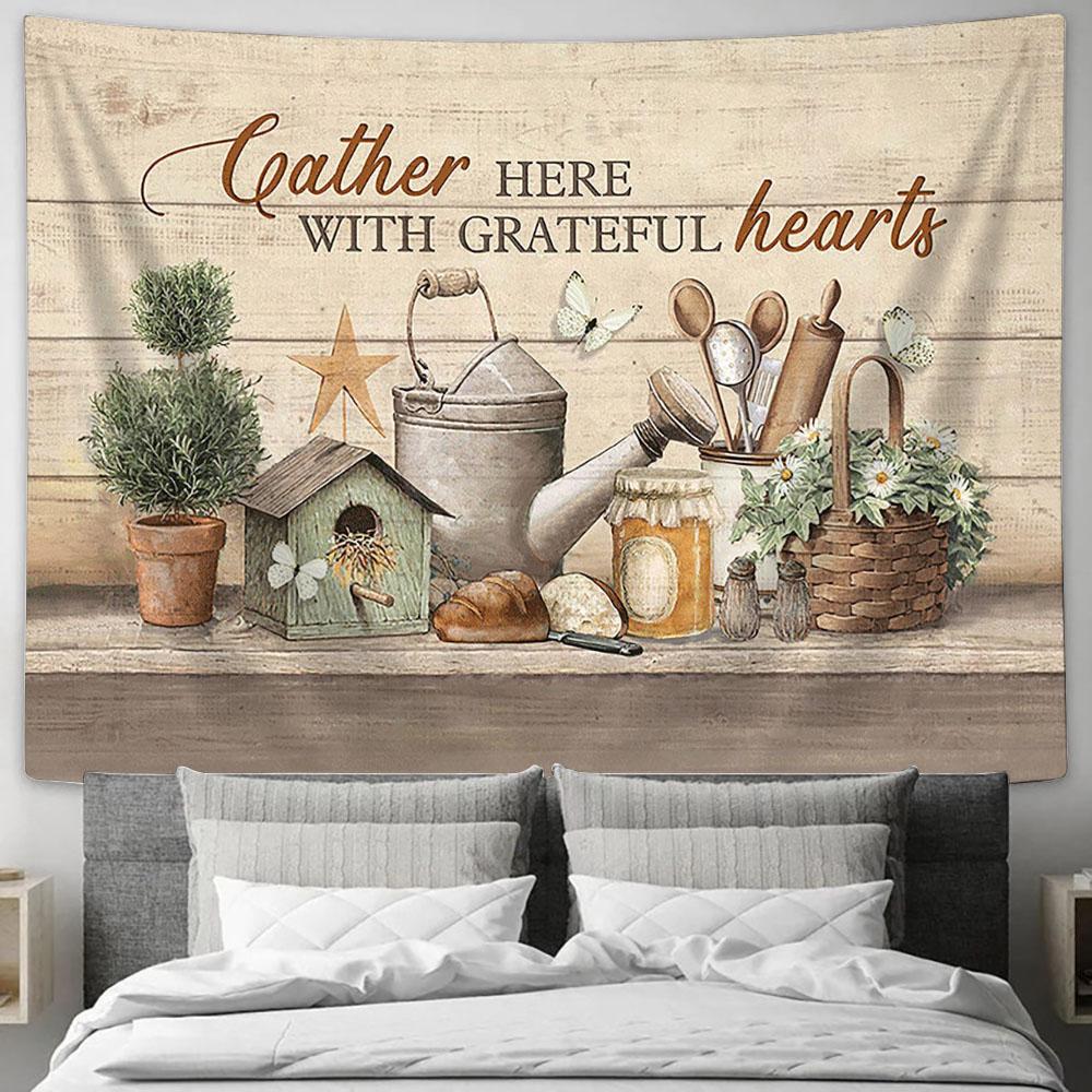 Gather Here With Grateful Hearts Vintage Kitchen Tapestry Prints - Religious Tapestry Art - Christian Home Decor