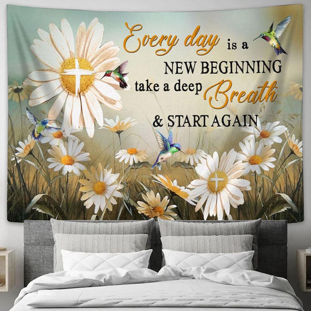 Daisy Flower Every Day Is A New Beginning Tapestry Prints - Religious Wall Decor - Christian Tapestry Wall Art