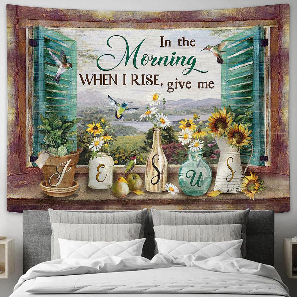 Daisy Hummingbird In The Morning When I Rise Give Me Jesus Tapestry Wall Art - Bible Verse Tapestry - Religious Tapestry Wall Hanging