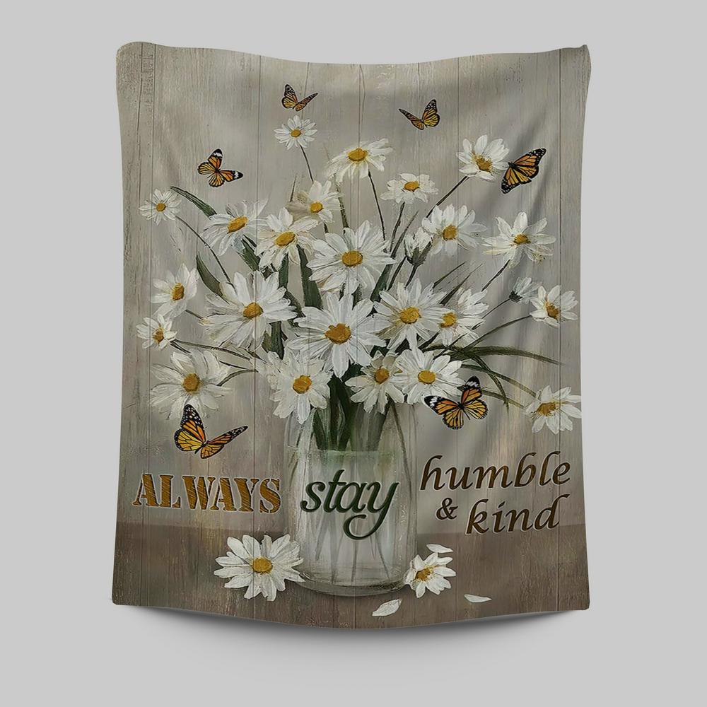 Daisy Vase Always Stay Humble And Kind Tapestry - Christian Wall Art - Religious Home Decor