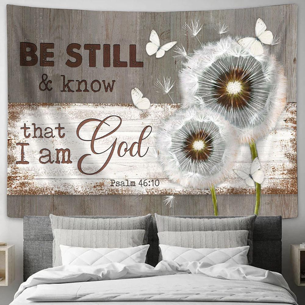 Dandelion Be still and know that I am God Tapestry Wall Art - Bible Verse Tapestry - Religious Tapestry Wall Hanging