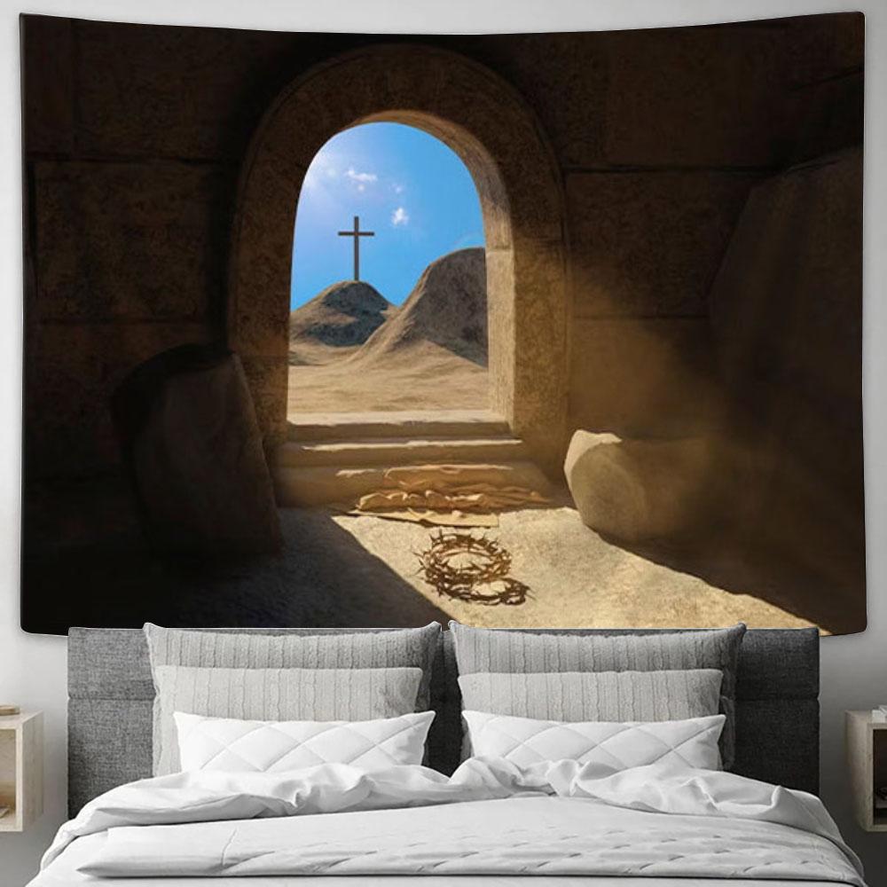 Crown Of Thorns Tomb Tapestry Art - Christian Wall Art Decor - Easter Wall Art