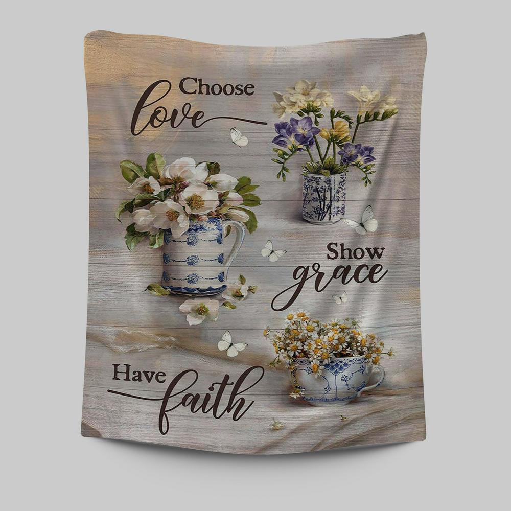 Chose Love Show Grace Have Faith Vintage Flower Tapestry Art - Christian Art - Bible Verse Wall Art - Religious Home Decor