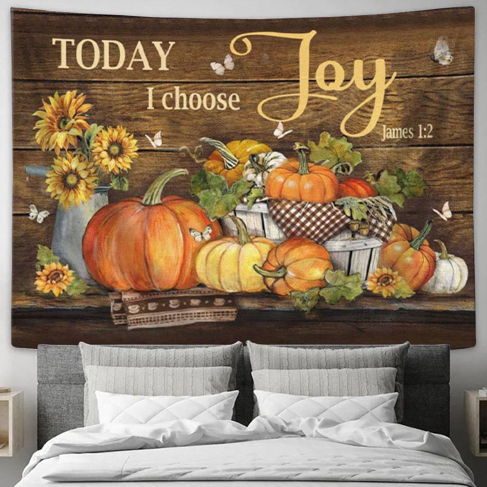 Today I Choose Joy James 12 Pumpkin Autumn Tapestry Wall Art - Christian Wall Decor
