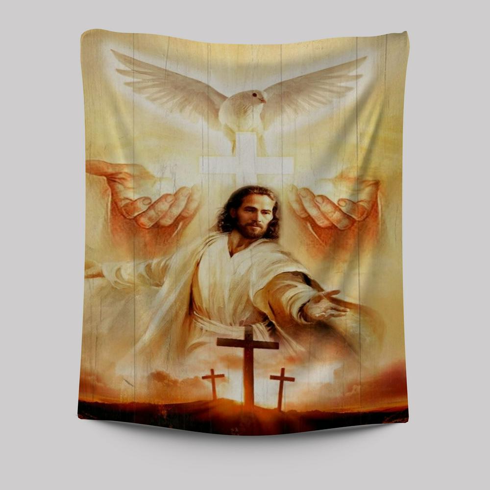 Beautiful Cross Dove Come With Me Jesus Tapestry, Tapestries for Living Room Bedroom