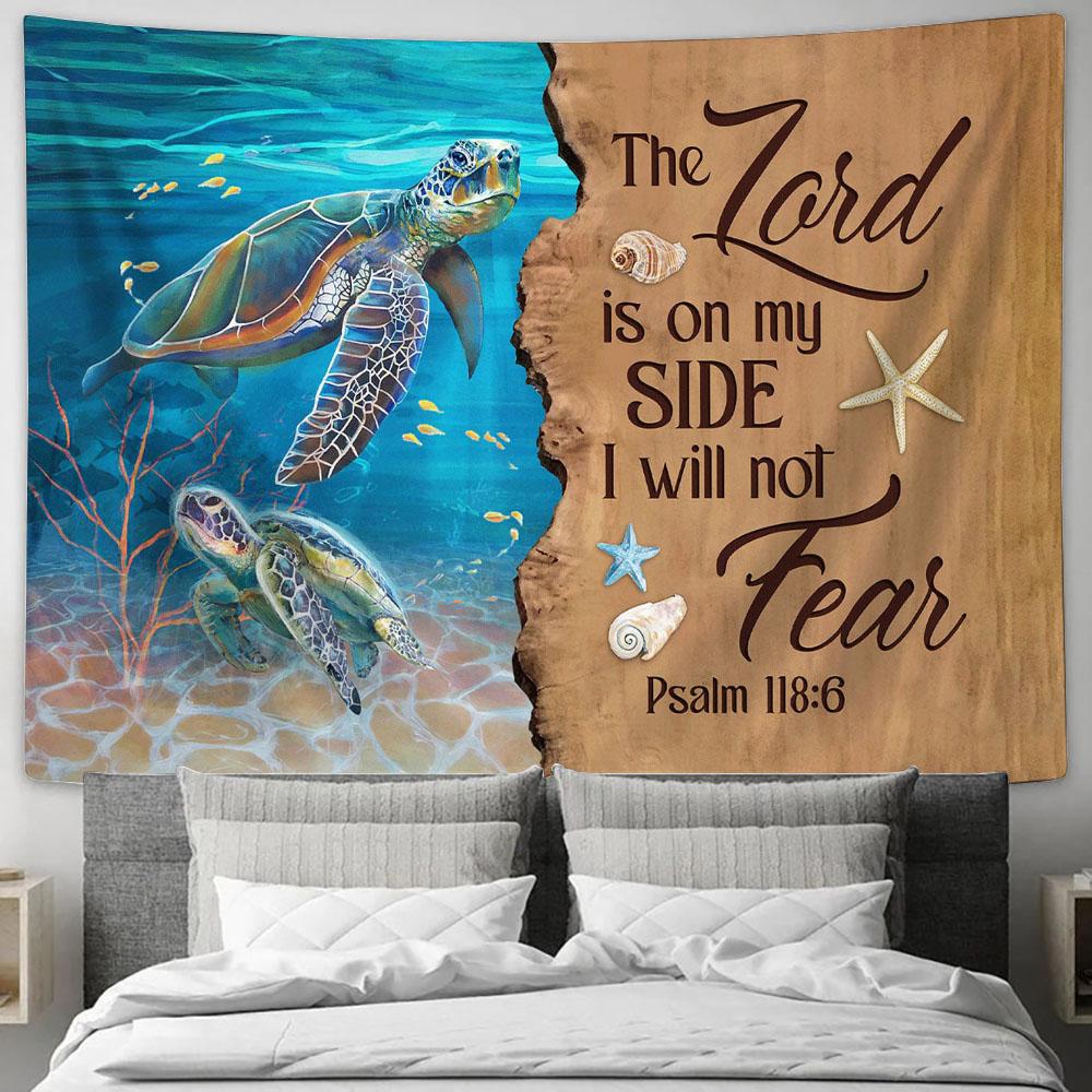 The Lord Is On My Side Sea Turtle Deep Ocean Tapestry Art - Bible Verse Wall Art - Wall Decor Christian