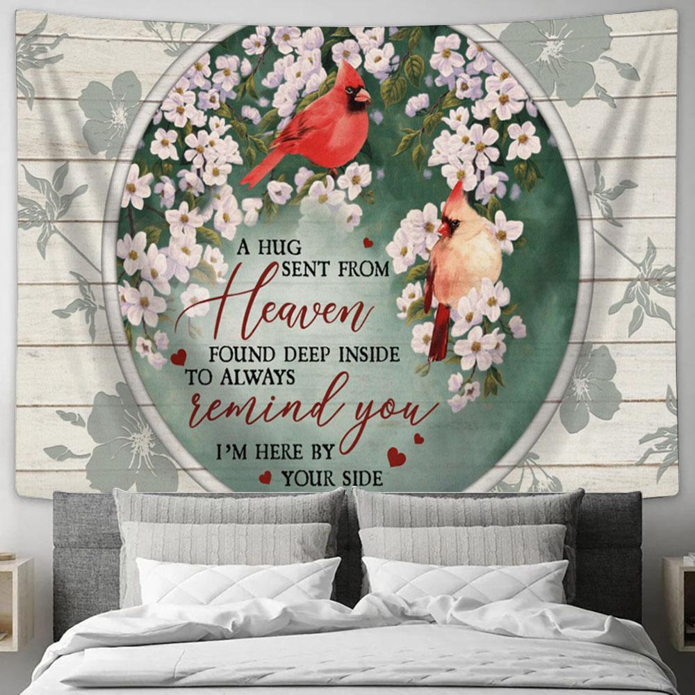 A Hug Sent From Heaven Red Cardinal Large Tapestry Art - Christian Wall Art Home Decor - Religious Tapestry Prints