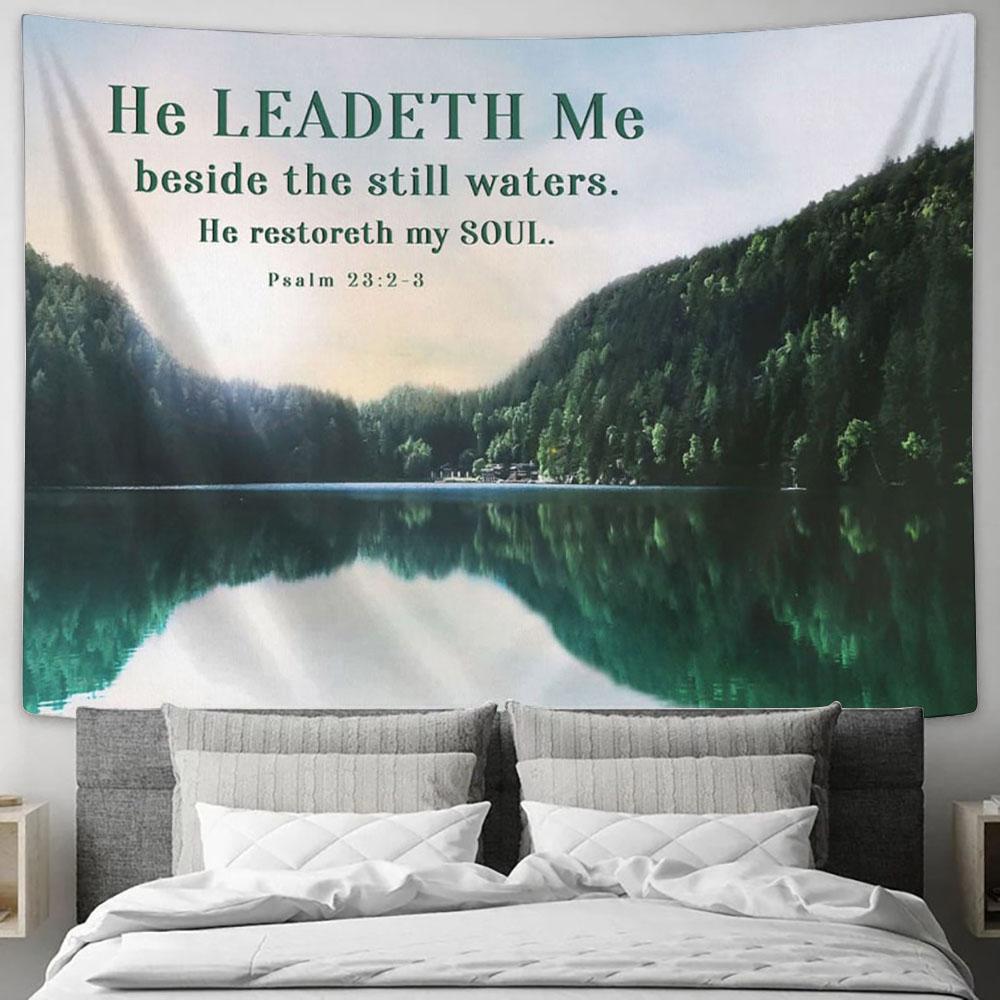 Psalm 232-3 He Leadeth Me Beside The Still Waters Tapestry Art - Scripture Tapestry Prints - Christian Wall Art
