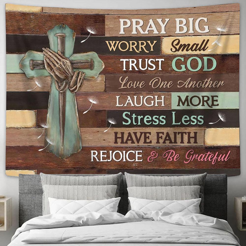 Pray Big Worry Small Trust God Tapestry Art - Scripture Tapestry Prints - Christian Wall Art