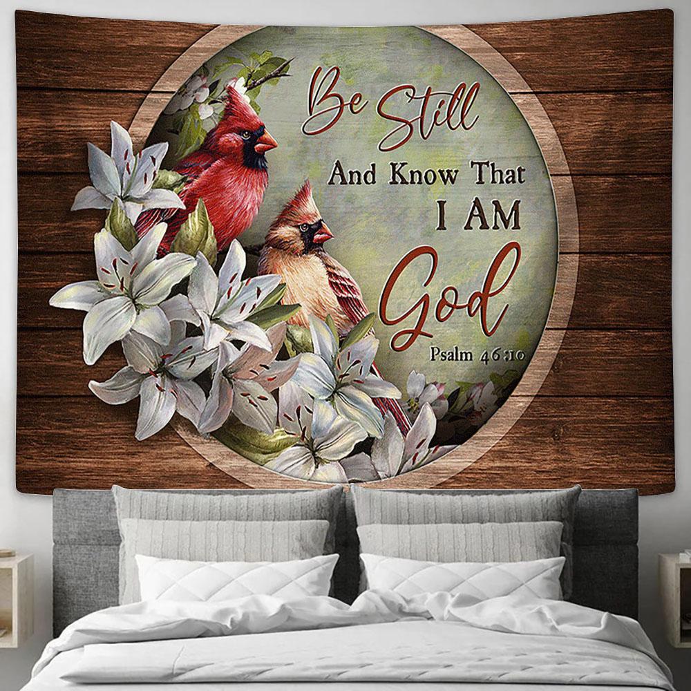 Lily Flower Cardinal Be Still And Know That I Am God Tapestry Art - Christian Wall Art Decor - Bible Verse Tapestry