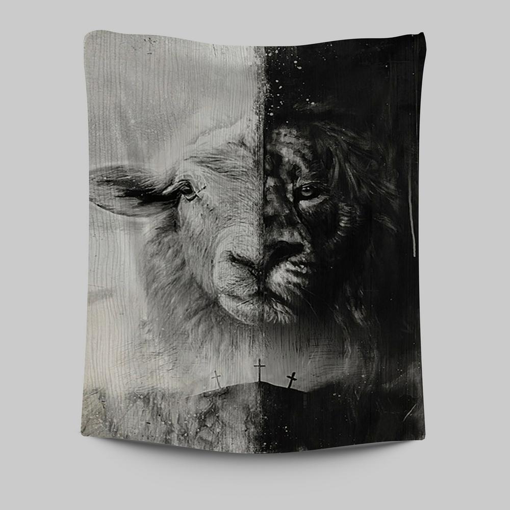 Lion And Lamb Face Tapestry - Lion Tapestry Print - Christian Wall Art - Religious Home Decor