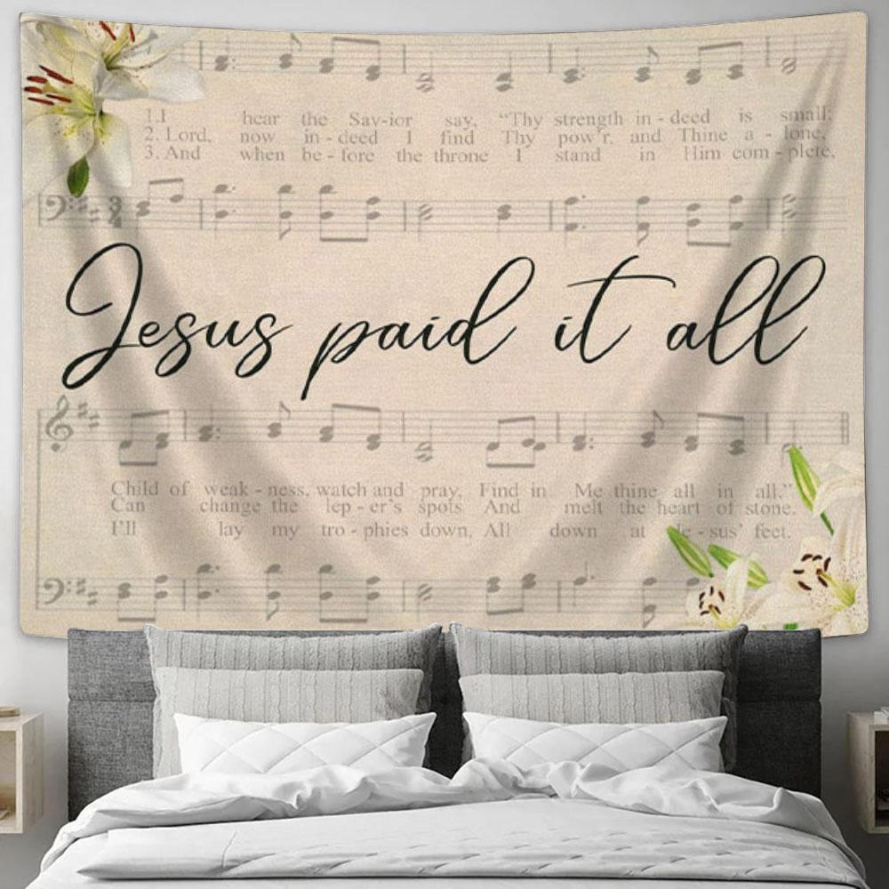 Jesus Paid It All Sheet Music Wall Art Tapestry, Easter Tapestry Wall Art - Bible Verse Wall Decor - Scripture Wall Decor