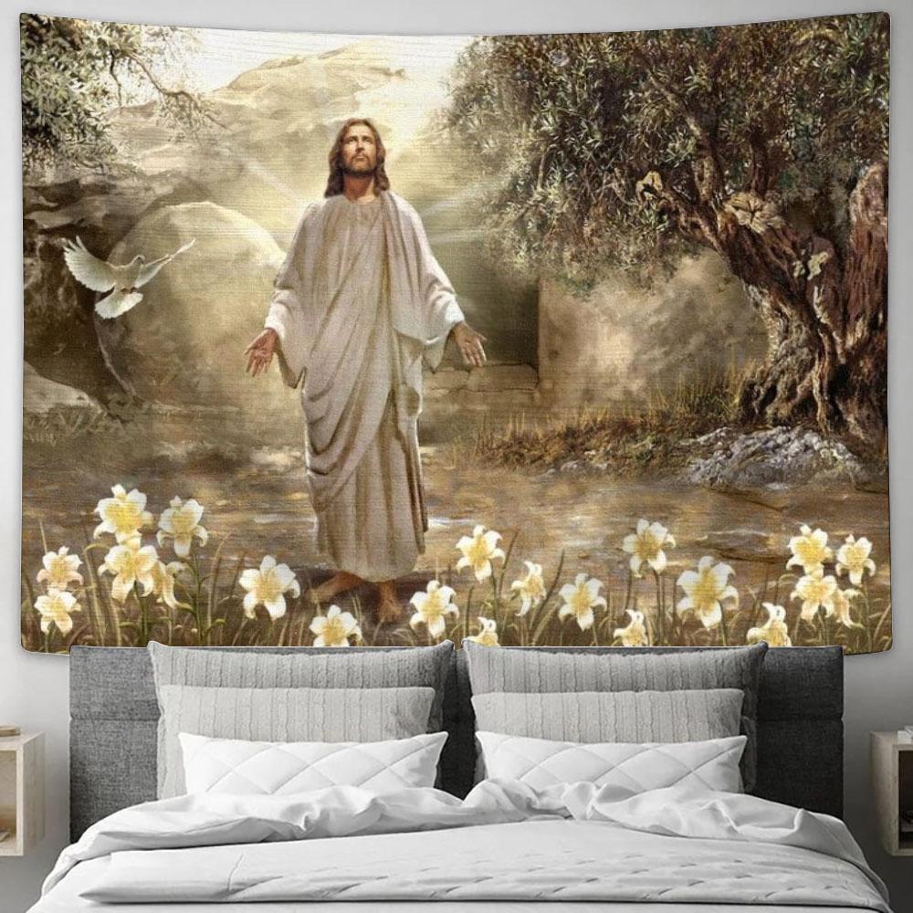 Jesus Painting, Dove Of Peace, Meadow Landscape, A New Day Has Come Tapestry, Tapestries for Living Room Bedroom