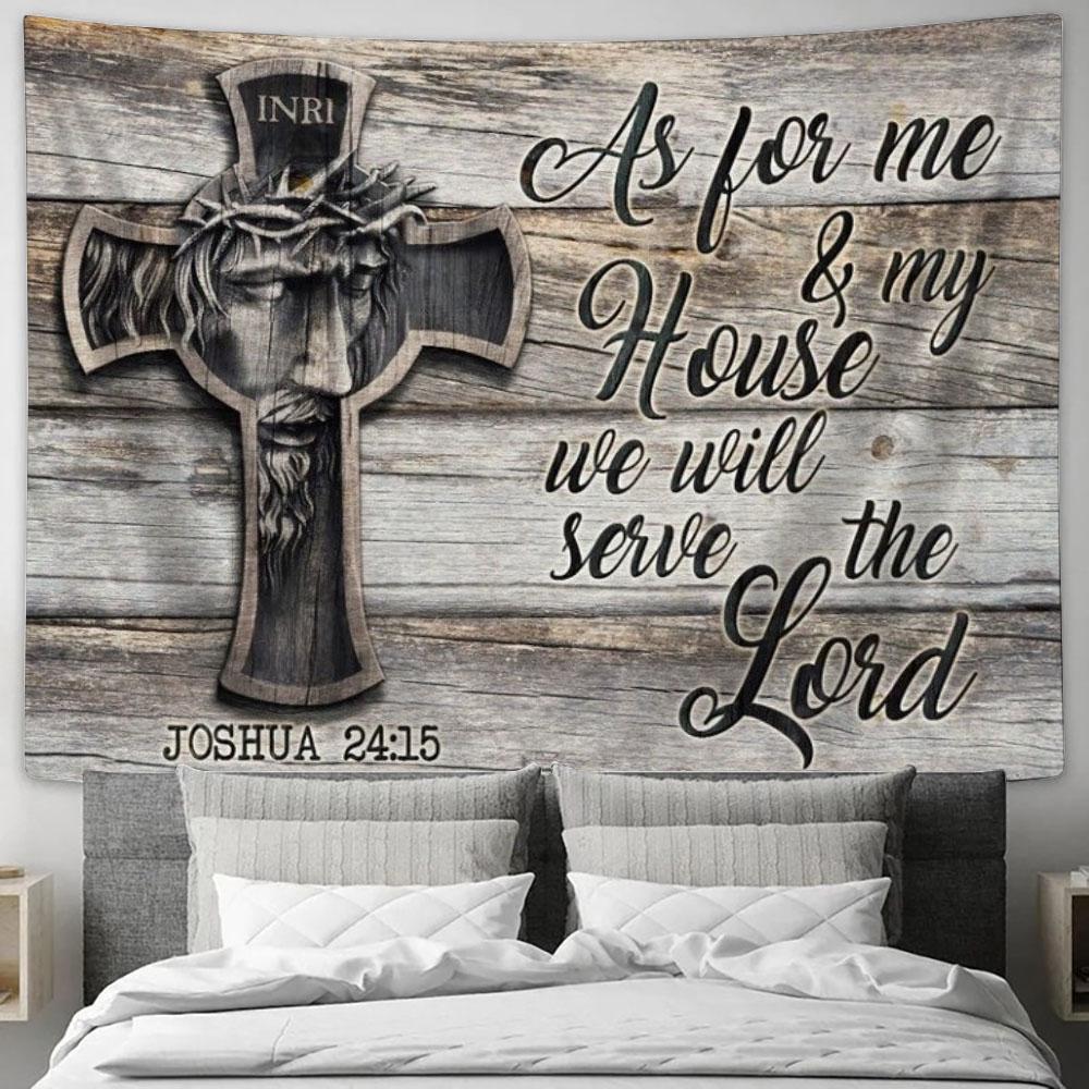 Jesus Painting Inri We Will Serve The Lord Tapestry, Tapestries for Living Room Bedroom