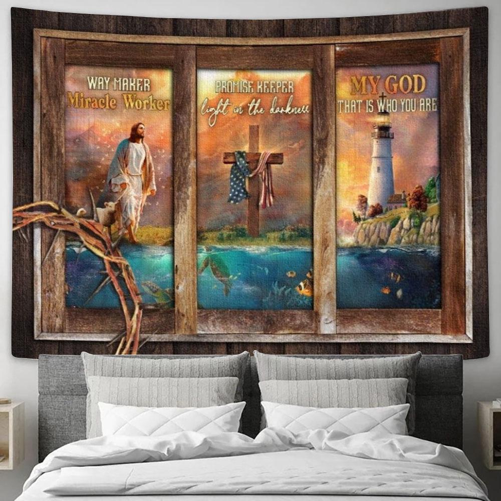 Jesus Painting, Lighthouse Drawing, Cross, Way Maker Tapestry, Tapestries for Living Room Bedroom