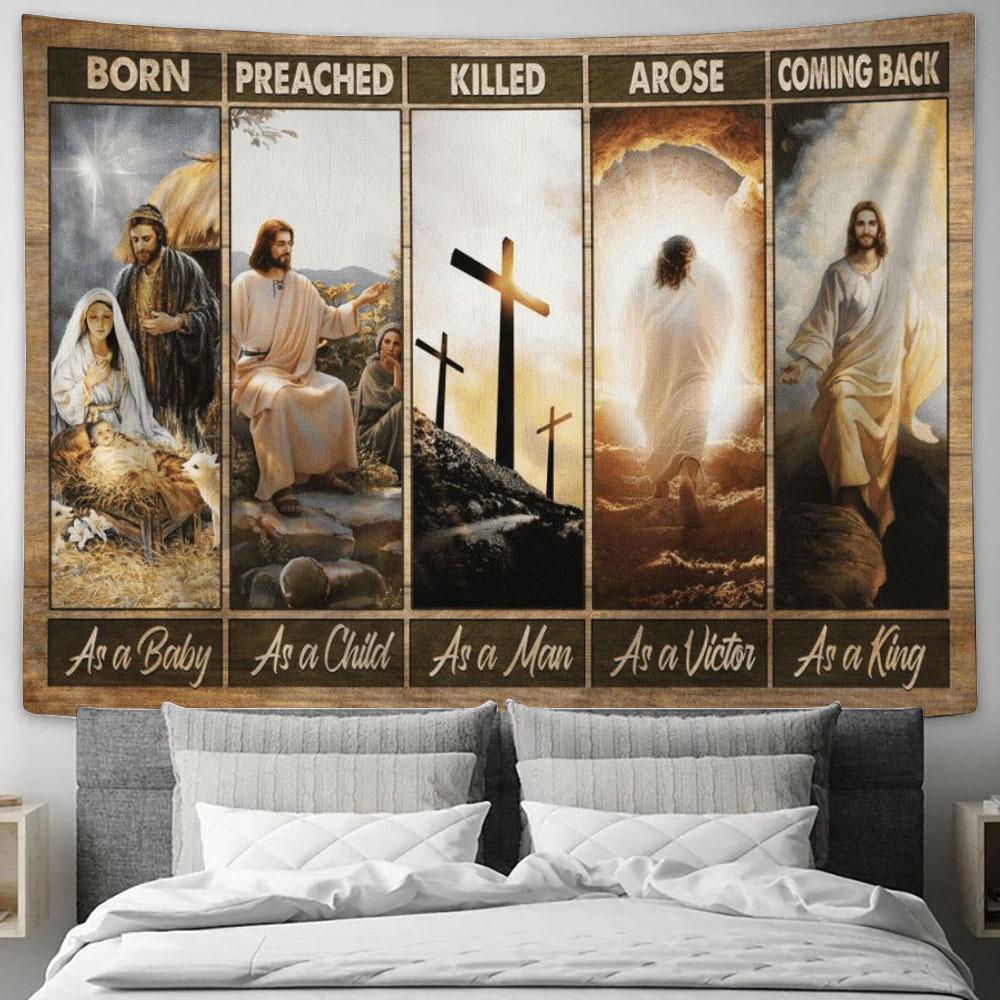 Jesus Painting The Life Of Jesus He Comes Back As A King Tapestry, Tapestries for Living Room Bedroom