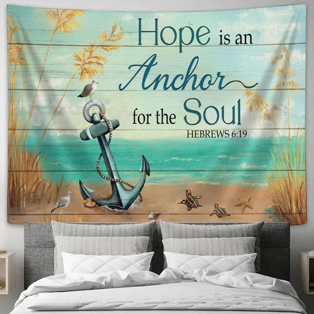Hope Is An Anchor For The Soul Tapestry - Anchor Blue Ocean Rice Field Large Tapestry Art - Christian Wall Art - Religious Tapestry Prints