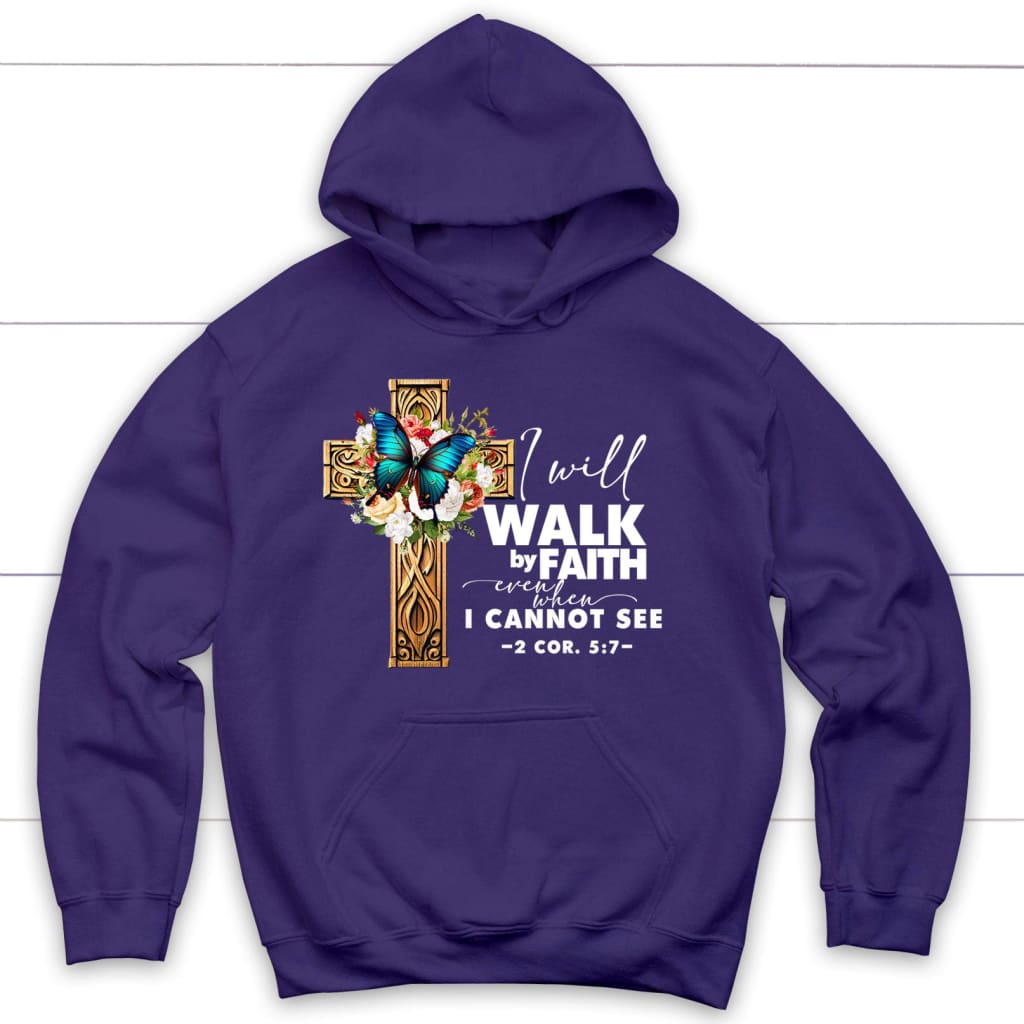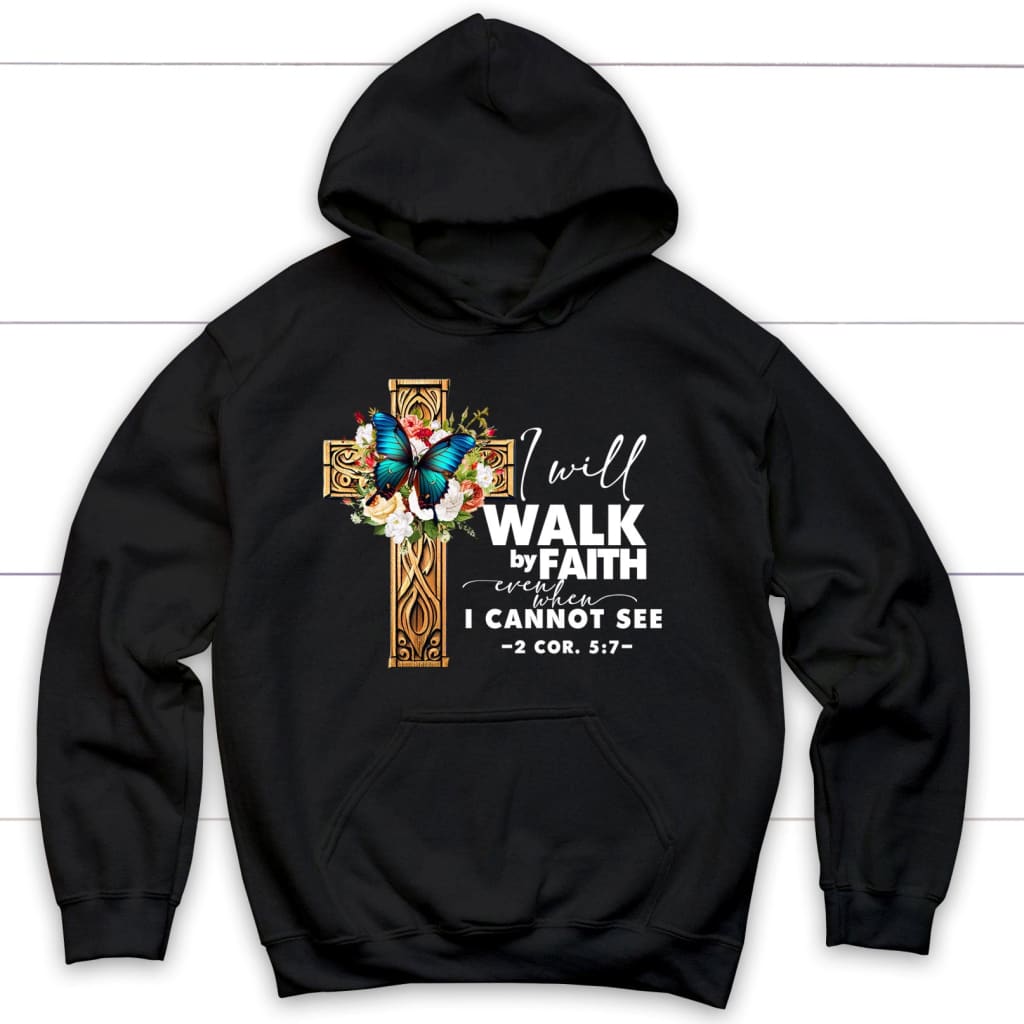 2 Cor 5:7 Walk By Faith Butterfly Cross Hoodie