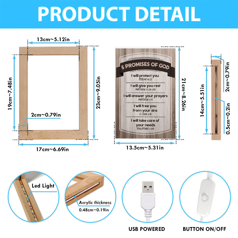 5 Promises Of God Frame Lamp Art - Christian Night Light - Religious Decor
