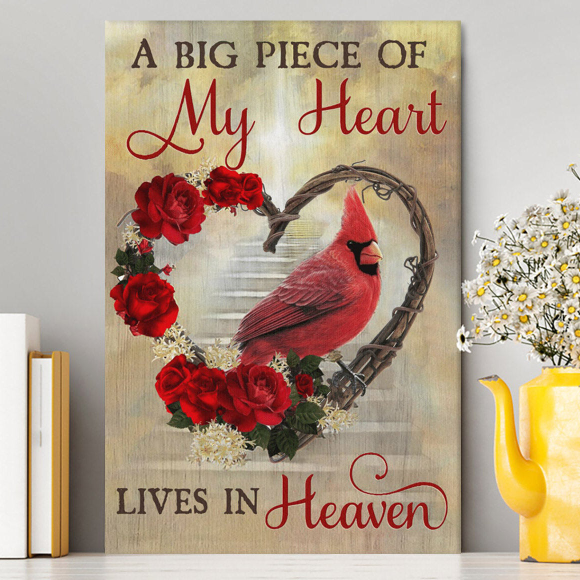 A Big Piece Of My Heart Lives In Heaven Red Rose Cardinal Canvas Wall Art - Christian Wall Art Decor - Religious Canvas Prints