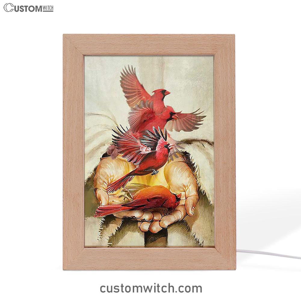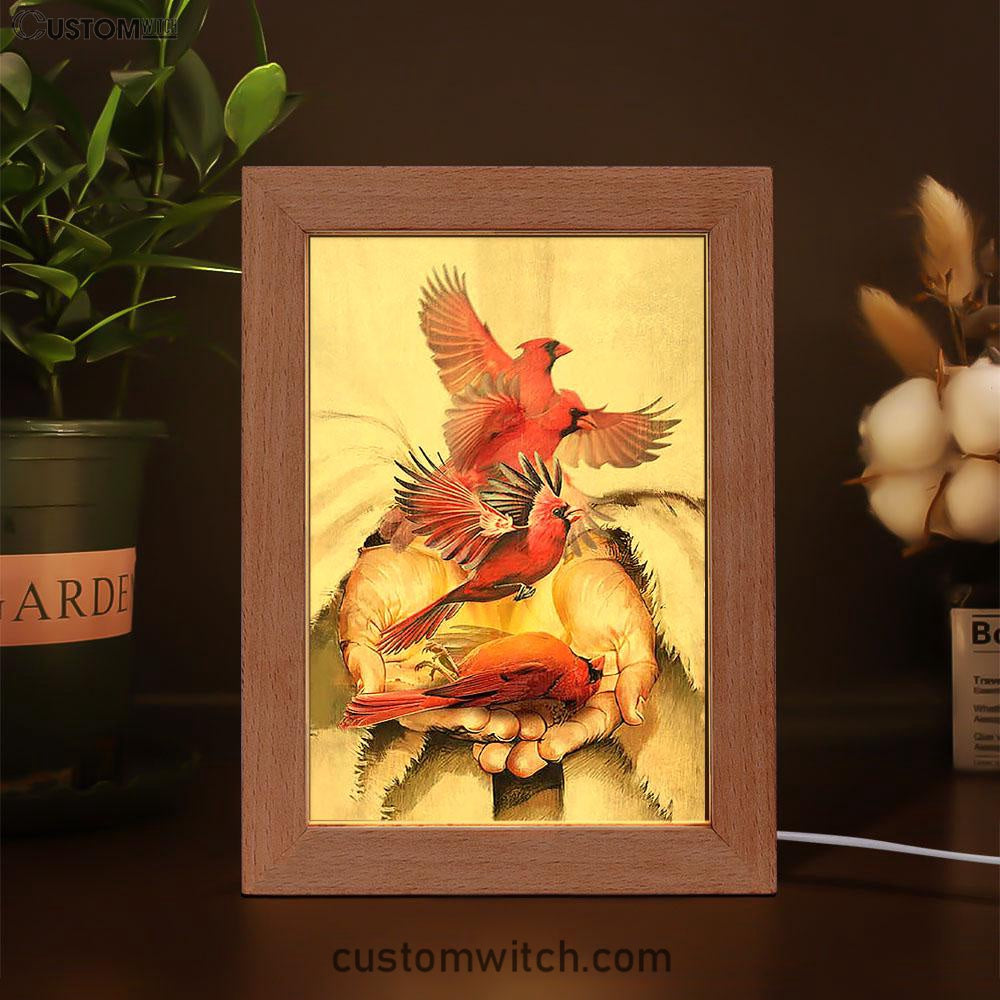A Cardinal On His Hand Jesus Frame Lamp Art - Christian Night Light - Bible Verse Wooden Lamp