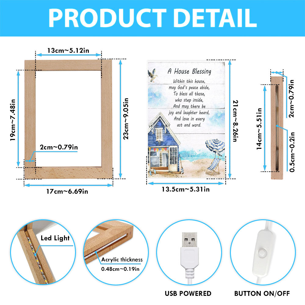 A House Blessing Frame Lamp Prints - God Bless This House Decor - Christian Night Light Decor