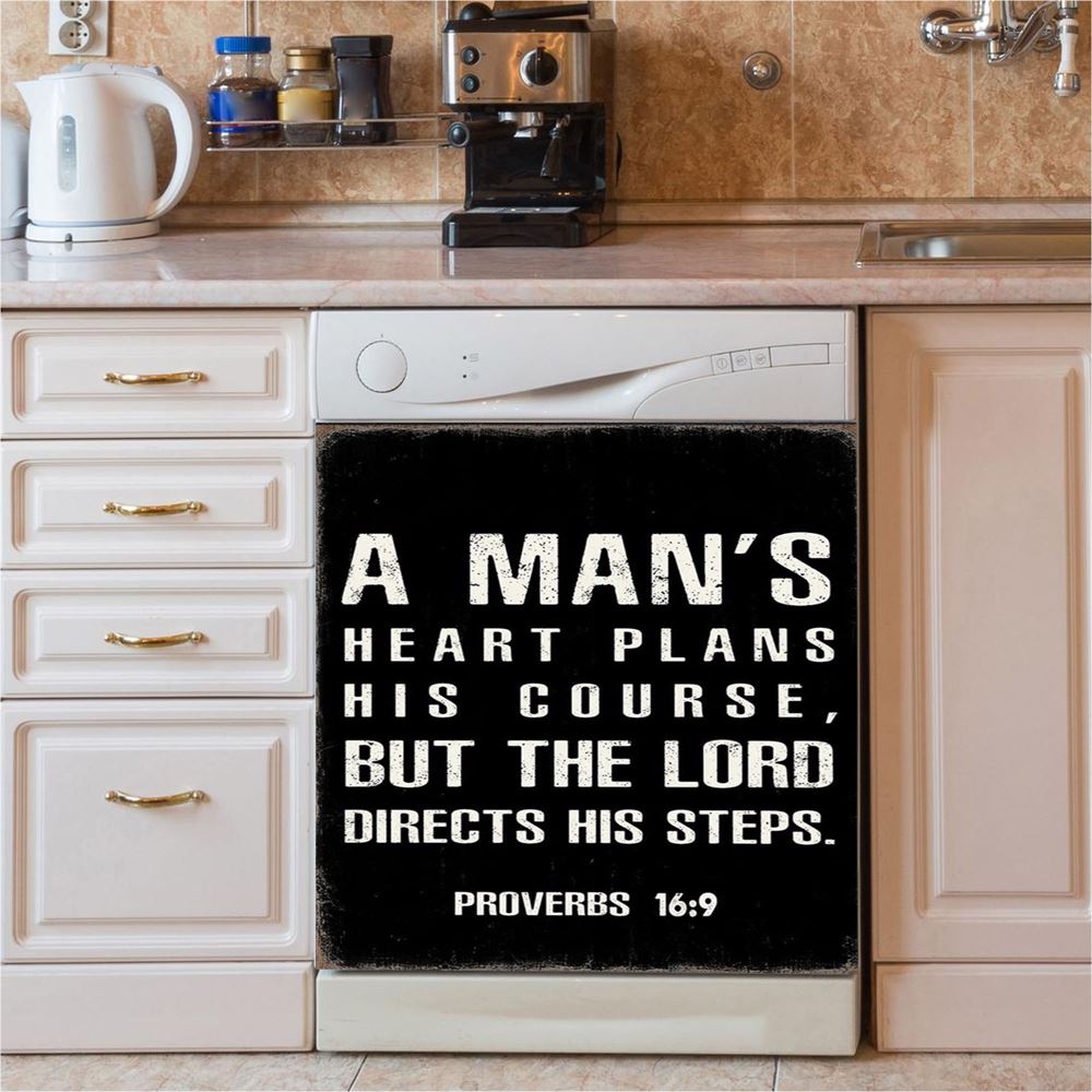 A Man'S Heart Plans His Course Proverbs 16 9 Dishwasher Cover, Christian Dishwasher Magnet Cover