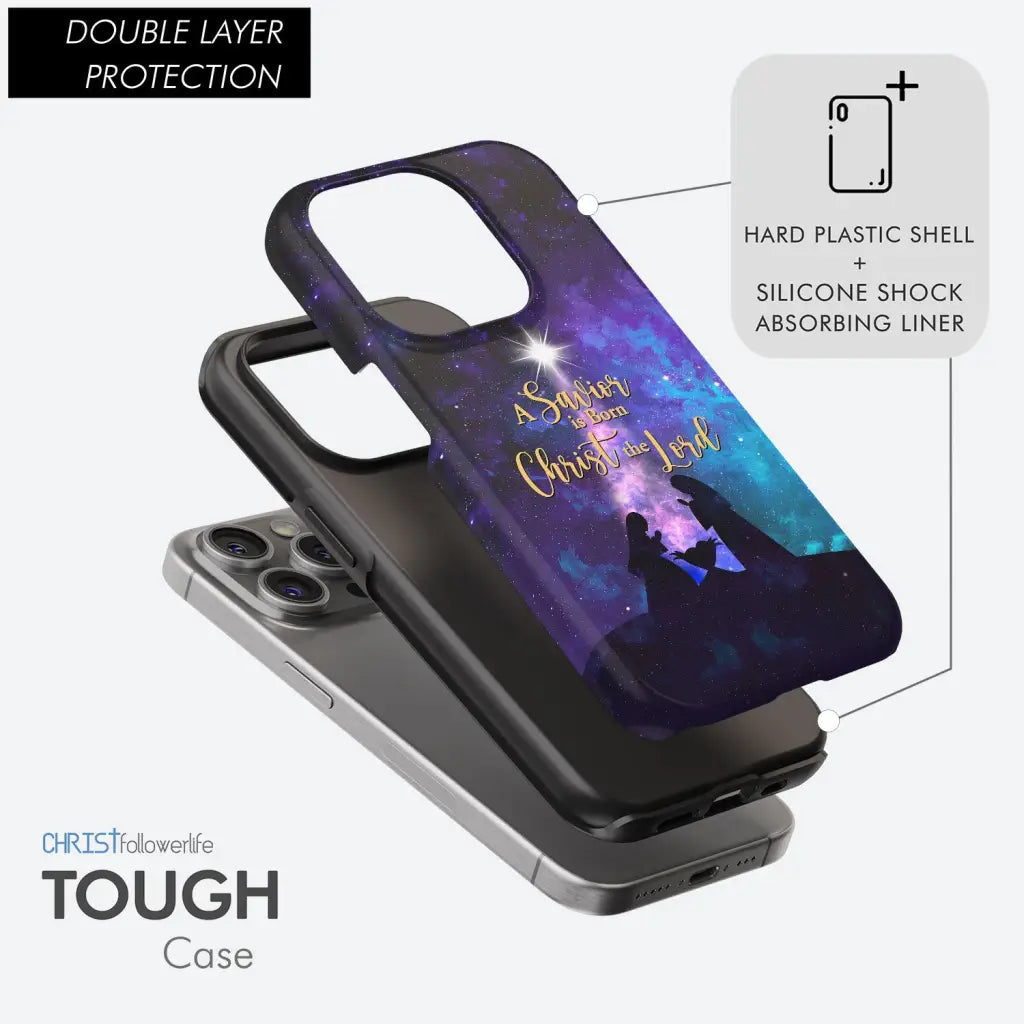 A Savior is born Christ the Lord, Christian Christmas phone case