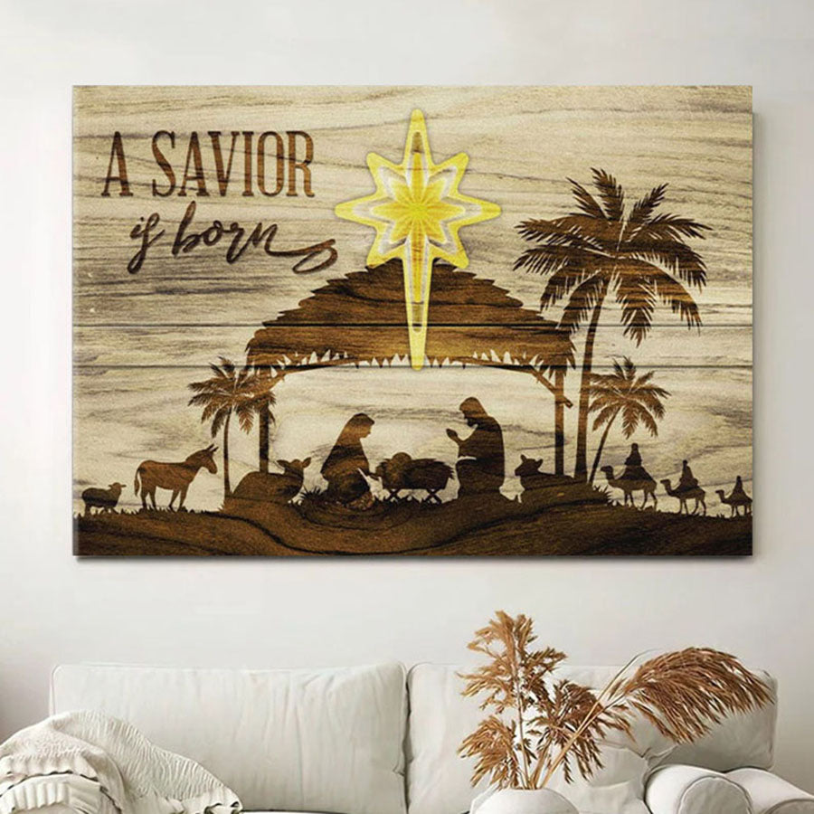 A Savior Is Born Christmas Canvas Wall Art - Christian Wall Decor