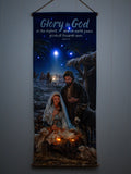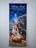 Celebrate the birth of Christ with the captivating A Savior is Born LED Banner. This stunning piece features the timeless artwork of Dona Gelsinger, depicting Mary, Joseph, and baby Jesus in the manger, surrounded by gentle animals and the radiant Star of Bethlehem. Illuminated by soft LED lights, the scene brings a warm and peaceful glow to your holiday decor.