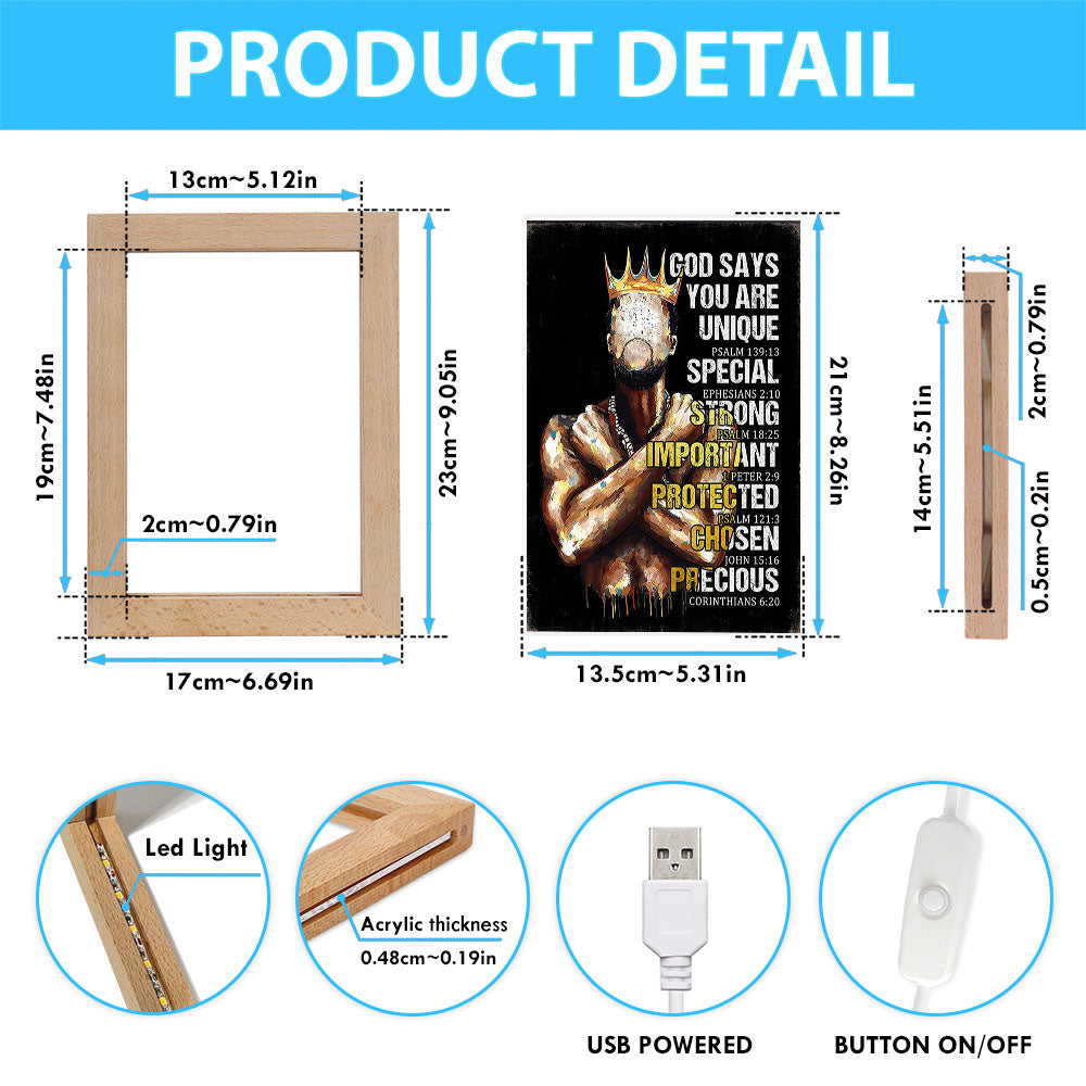 African American God Says You Are Frame Lamp Art - Christian Night Light Decor