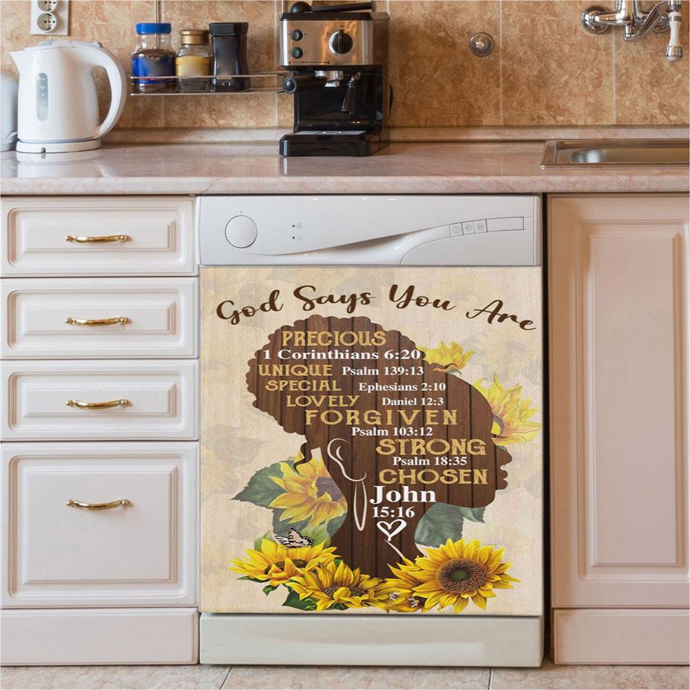 African American God Says You Are Sunflower Dishwasher Cover, Bible Verse Dishwasher Magnet Cover, Scripture Kitchen Decor