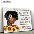 African American Sunflower Canvas Wall Art - Always Remember You Are Braver Than You Believe - Gift For African American Women, Girls