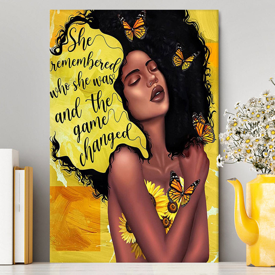 African American Woman Black Canvas Art - She Remembered Who She Was And The Game Changed Wall Decor -Encouragement Gifts For Women