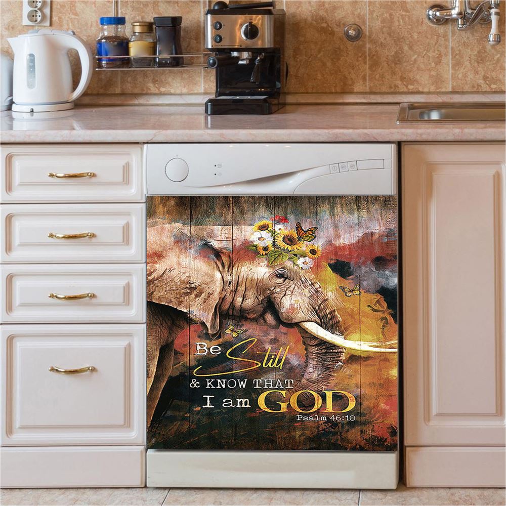 African Elephant Sunflower Be Still And Know That I Am God Dishwasher Cover, Christian Dishwasher Magnet Cover, Bible Verse Kitchen Decor