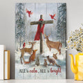 All Is Calm All Is Bright Animal Wooden Cross Canvas Wall Art - Christian Canvas Prints - Bible Verse Canvas Art