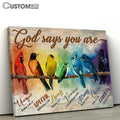 Alluring Bird, Pretty Red Cardinal, Bible Verses, Colorful Paintings, God Says You Are Canvas Poster