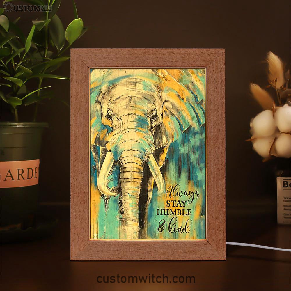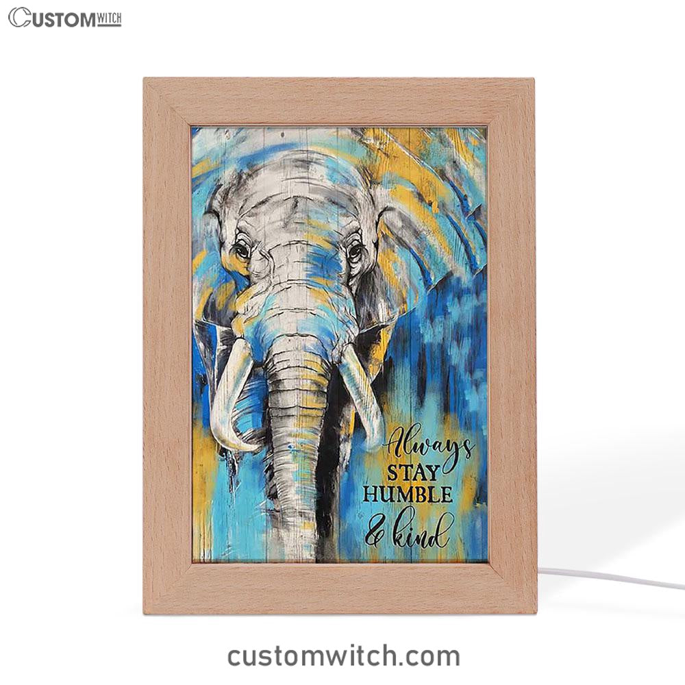 Always Stay Humble And Kind Strong Elephant Frame Lamp Art - Bible Verse Art - Christian Inspirational Decor