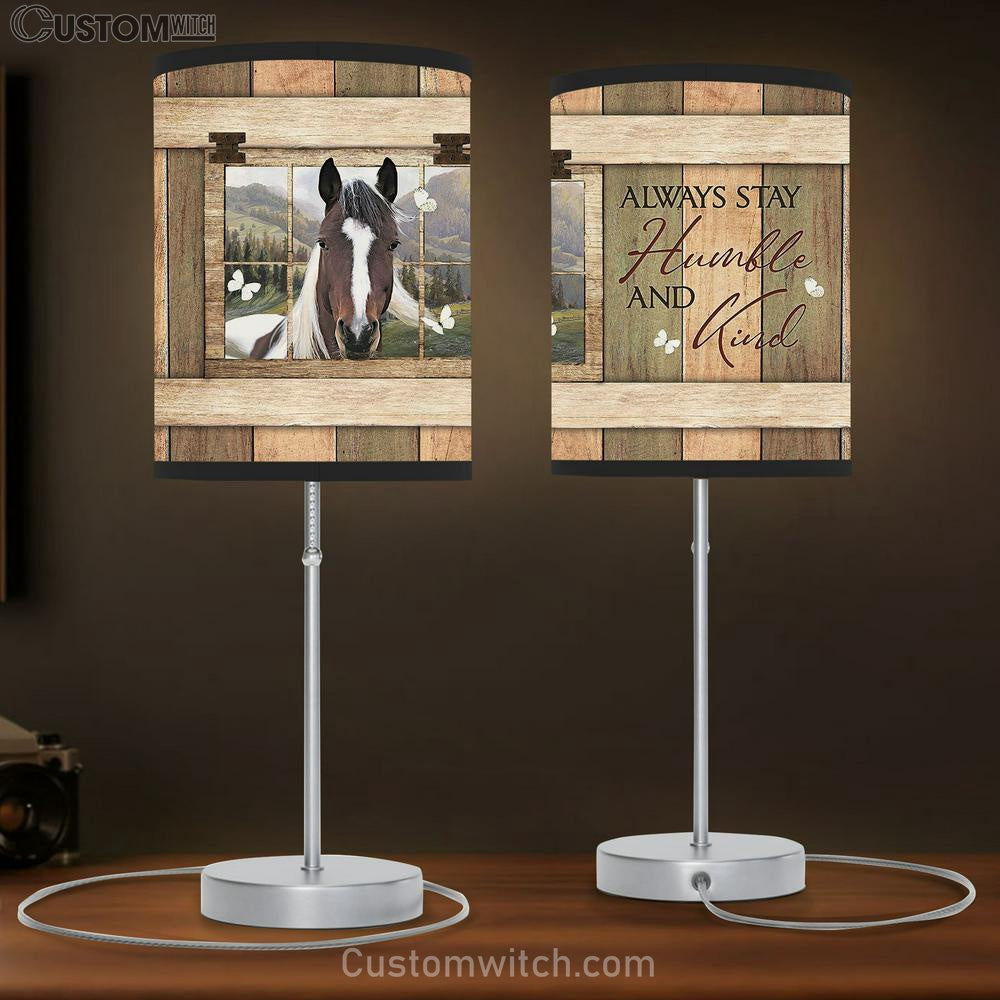 Always Stay Humble And Kind White And Brown Horse Butterfly Table Lamp Prints - Religious Table Lamp Art - Christian Home Decor