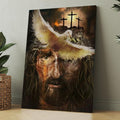 Amazing Dove With Olive Branch, Three Wooden Crosses, Beautiful Jesus Painting Canvas, Christmas Gift for Christian
