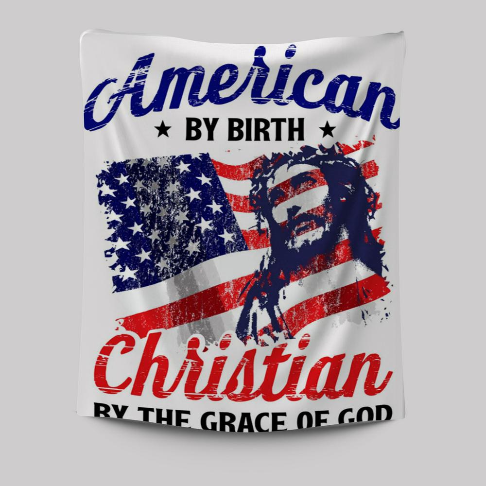 American By Birth By The Grace Of God Tapestry Wall Art - Christian Wall Art Decor - Religious Tapestries Wall Hanging Prints