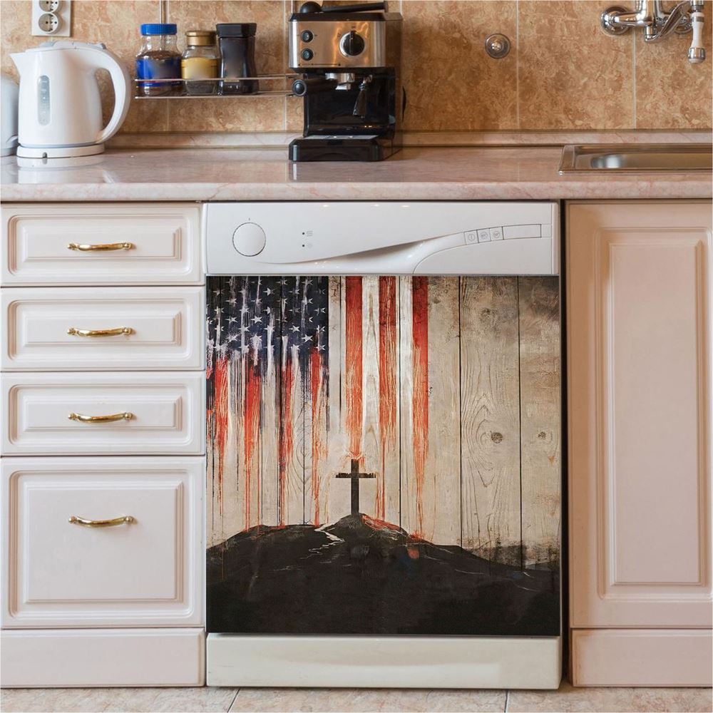 American Flag Cross Dishwasher Cover, Christian Dishwasher Magnet Cover, Religious Kitchen Decor
