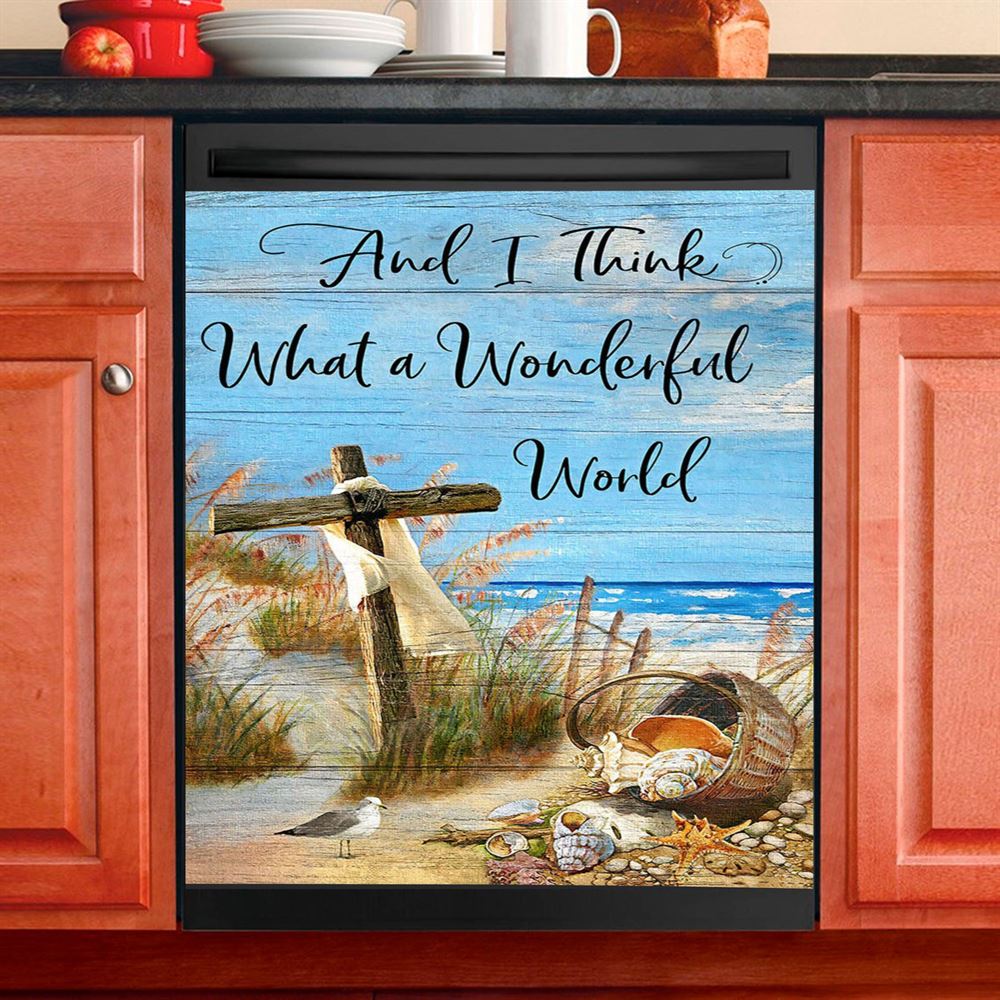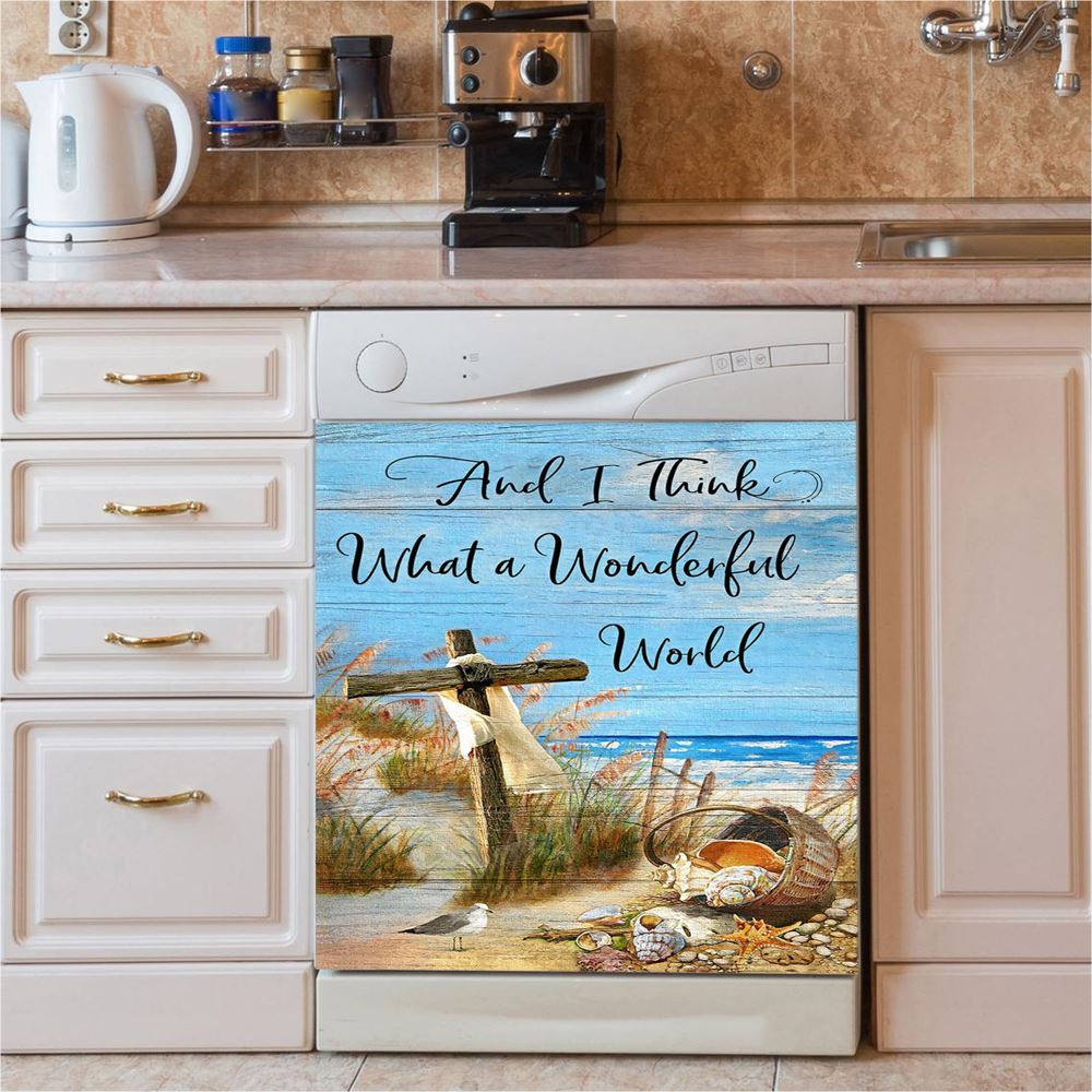 And I Think What A Wonderful World Dishwasher Cover, Christian Dishwasher Magnet Cover, Religious Kitchen Decor