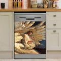 Angel Wings Little Yorkshire Terrier Jesus Painting Dishwasher Cover, Christian Dishwasher Magnet Cover, Bible Verse Kitchen Decor
