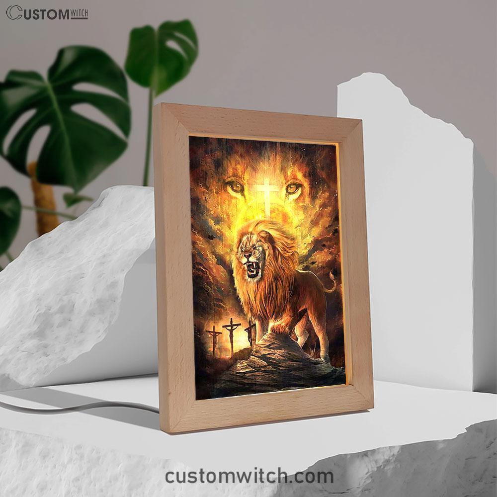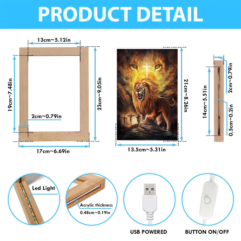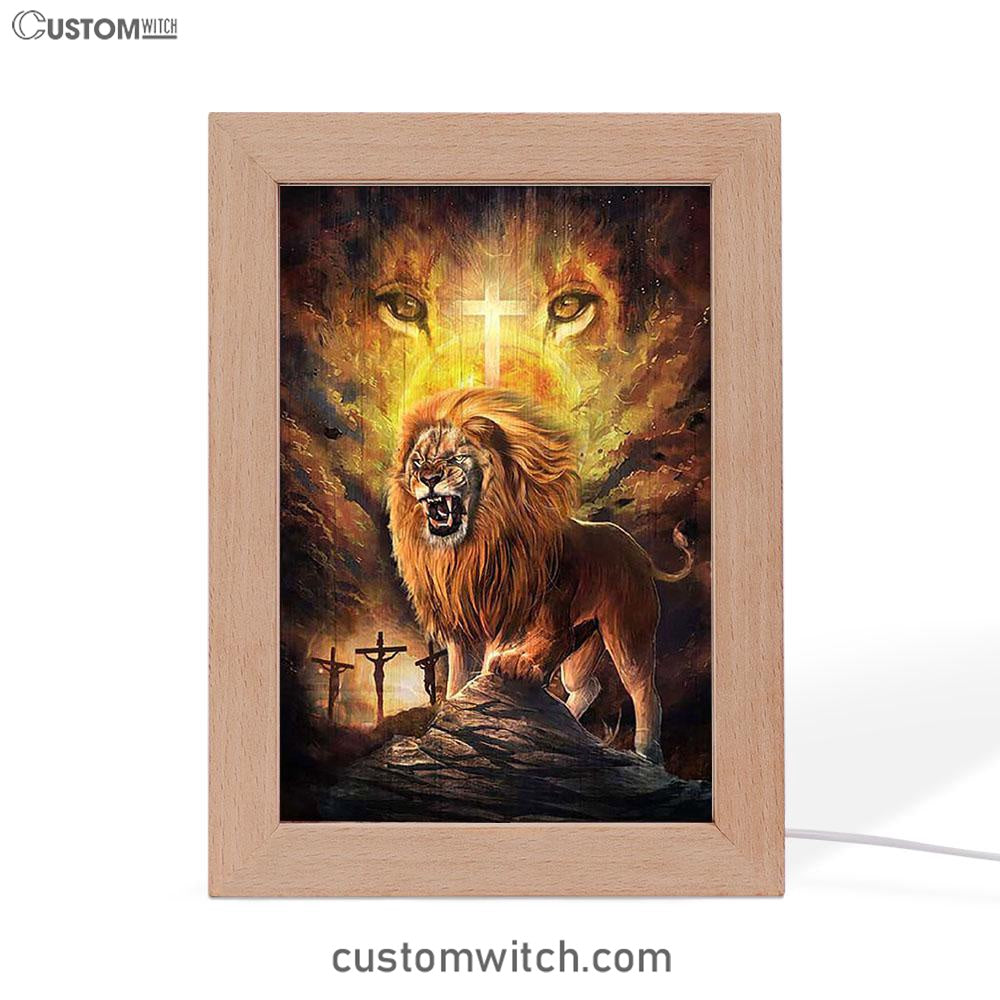 Angry Lion Of Judah Jesus On The Cross Frame Lamp Art - Christian Night Light - Bible Verse Wooden Lamp