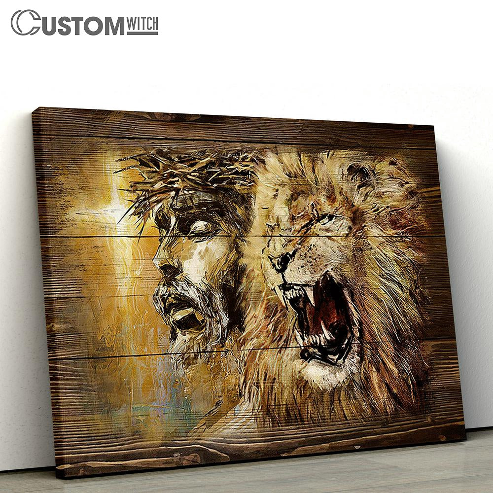 Angry Lion Stunning Jesus Face Canvas Wall Art - Bible Verse Canvas - Religious Prints