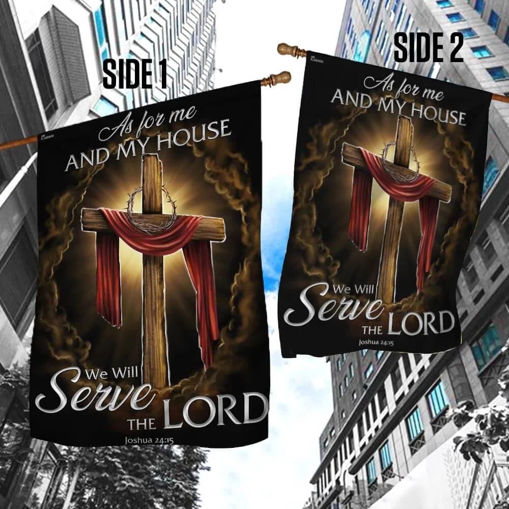As For Me And My House We Will Serve The Lord Christian Cross House Flags, Christian Flag, Scripture Flag, Garden Banner