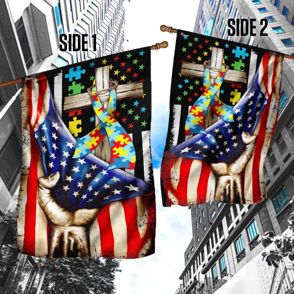 Autism Awareness Christian Cross House Flags, Christian Flag, Scripture Flag, Garden Banner